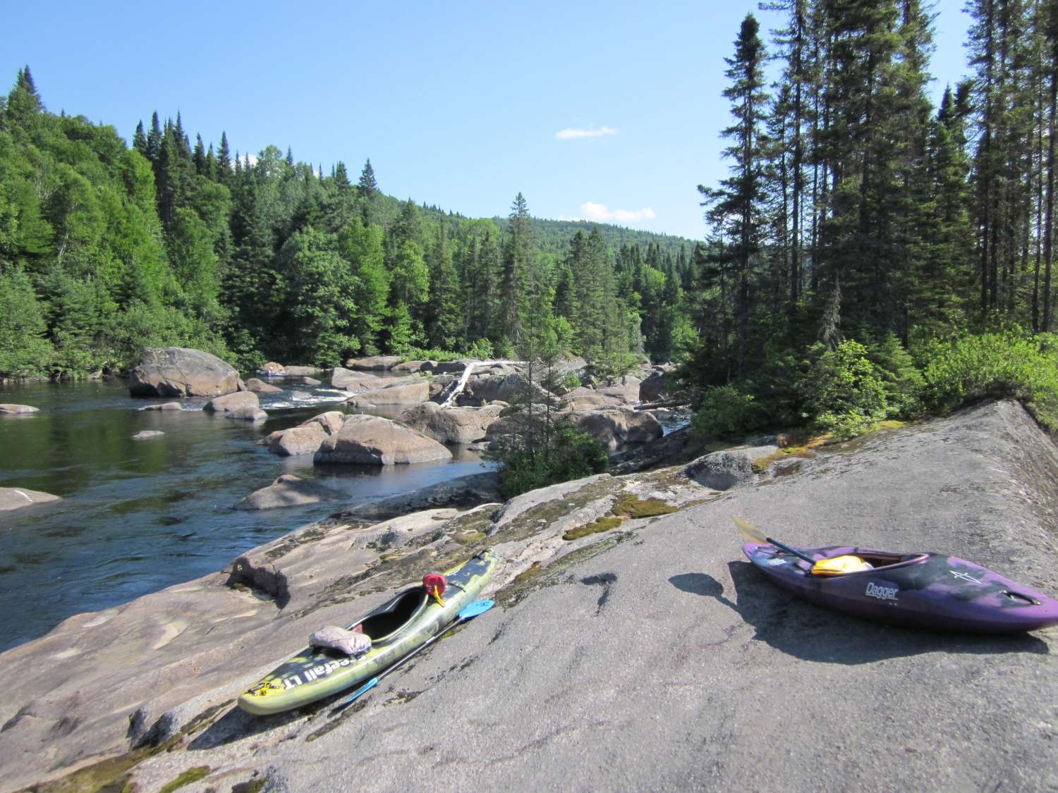 Day 1: We carried to our Friday night campsite along the RR tracks, and in the morning ran the empty canoes down a sneak route through the steep rapid that marks the confluence of the Batiscan and Jeanotte.